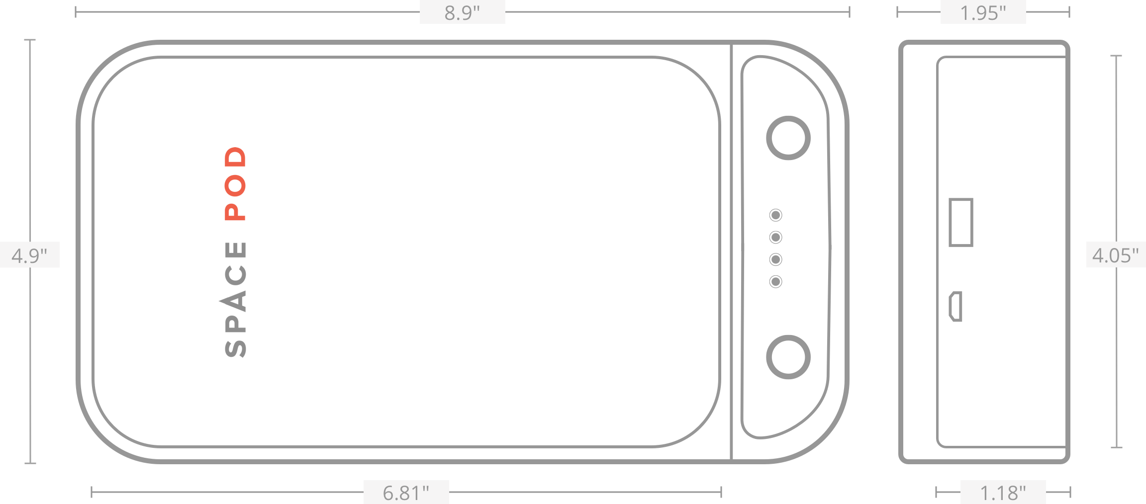Space Pod is great sterilizing your phone, keys, wallet, cash, jewelry, makeup, or any other small items that fit in its chamber. Delivers the power of 6 hours of sunlight within 5 mins!